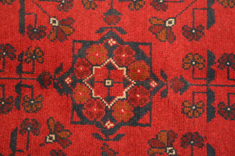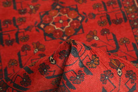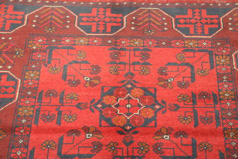 Khal Mohammadi are handknotted by Turkmenians in northern Afghanistan and in some cases they can also be handknotted in Pakistan by the Turkomans who have crossed over the borders. Traditionally they have an elephant foot pattern and the Afghan carpet is famous for their beautiful red nuance. The carpet is very durable, with the best quality from Afghanistan. A beautiful carpet well worth its price.