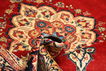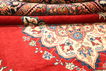This carpet is knotted in the Sarough area in the western parts of central Persia. The carpet is manufactured with several kinds of patterns, but often has a centrally placed medallion and a distinct border which resembles the Kerman and Keshan carepts. A very durable carpet with a high knot density and shiny wool.