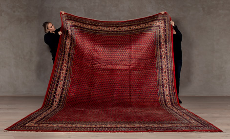 All Patina carpets are washed, then thoroughly examined for any potential damage that might compromise the carpet's continued sustainability. If the pile is unevenly worn or if the surface layer of the pile is damaged this is carefully and gently polished down to give a beautiful smooth surface. The end result is the best of both worlds, a sustainable carpet which clearly perceives the majestic feeling that only an older carpet can reflect. You also get a beautiful carpet that will not only continue to increase in value, but that is moreover a pleasure to behold.