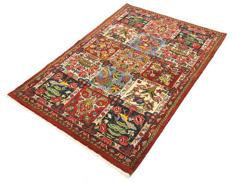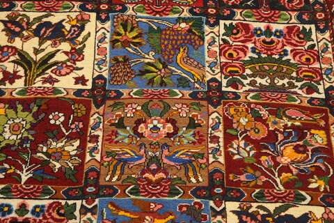 The Bakhtiari carpet is famous for their pattern with different squared garden motifs. The carpet is very durable and can also occur with medallions. The wool is considered to be the best in Persia, since the wool comes from sheep which graze in the mountatins thus making the wool fat and shiny. These beautiful carpets are often collector's items among the Persian carpets.