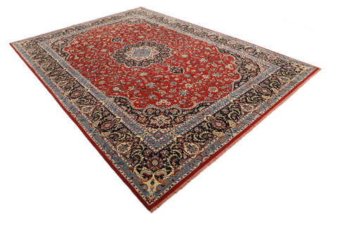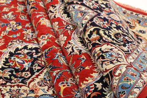 Elaborate weaving technique with specialized artisans tying knots to form rows of pile either by cutting each individual knot or an entire row of knots. Hand-knotting takes time and also allows for intricate patterns.