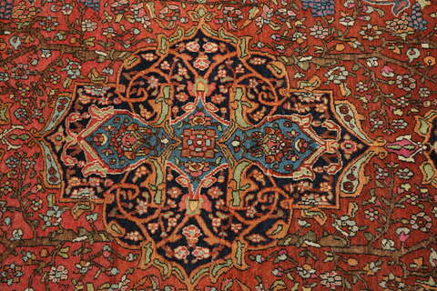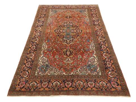 This carpet is knotted in the city of Isfahan in southwestern Persia. The carpet is thought to be the finest of all Persian carpets today. They are characterized by high knot density, extremely detailed patterns and high quality materials. Carpets from Isfahan are to be regarded as excellent craftmanship.