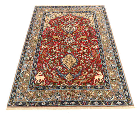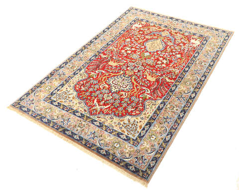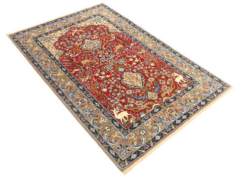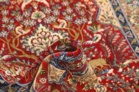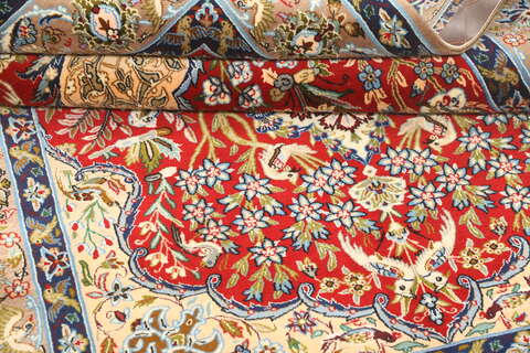 Elaborate weaving technique with specialized artisans tying knots to form rows of pile either by cutting each individual knot or an entire row of knots. Hand-knotting takes time and also allows for intricate patterns.