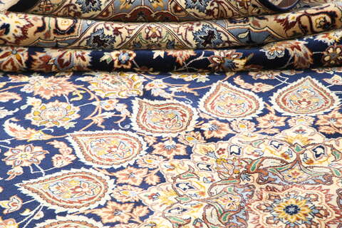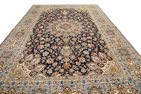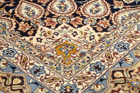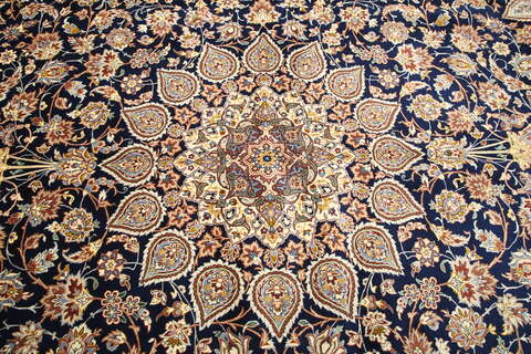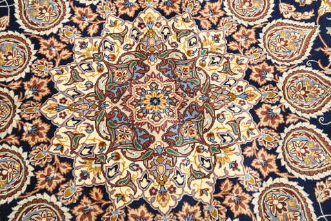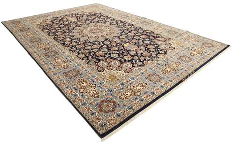 This carpet is knotted in the city of Isfahan in southwestern Persia. The carpet is thought to be the finest of all Persian carpets today. They are characterized by high knot density, extremely detailed patterns and high quality materials. Carpets from Isfahan are to be regarded as excellent craftmanship.