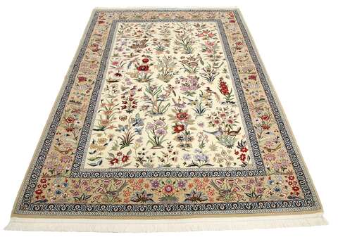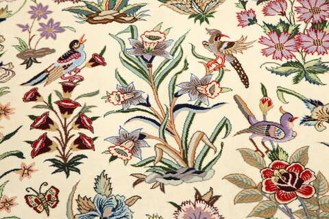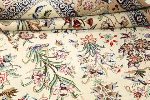 Elaborate weaving technique with specialized artisans tying knots to form rows of pile either by cutting each individual knot or an entire row of knots. Hand-knotting takes time and also allows for intricate patterns.