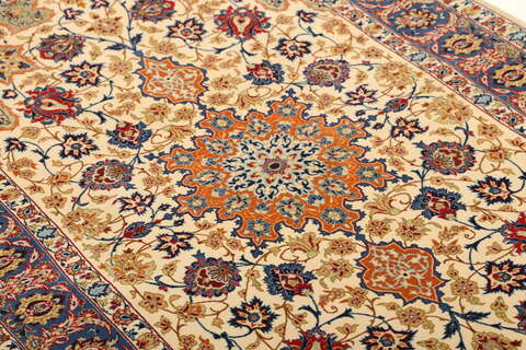 Elaborate weaving technique with specialized artisans tying knots to form rows of pile either by cutting each individual knot or an entire row of knots. Hand-knotting takes time and also allows for intricate patterns.