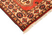 This carpet is woven in Pakistan. The patterns are inspired by Russian geometric patterns and the wool used is made from natural vegetable dyes. The carpet is durable with powerful colours. They are stone washed giving it a glossy look.