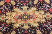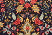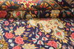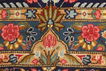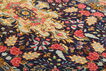 This carpet is knotted in workshops in the city of Kerman in southeastern Persia. A large number of carpets are sold to the courts around the world. The ground colour is often red, and the pattern is dominated by a large medallion and a wide border filled with flowers.