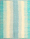 Handwoven rugs are created by interlocking warp and weft, creating a relatively thin rug without pile.