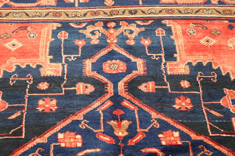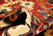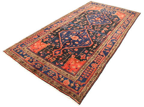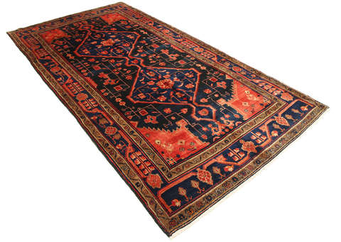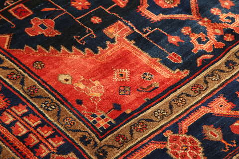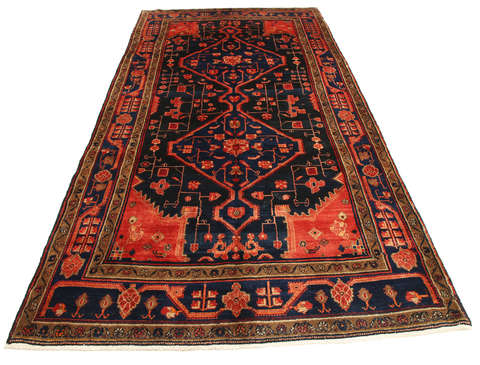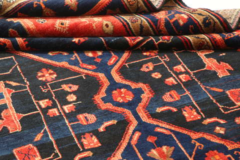 This carpet is knotted by Kurdish tribes in northwestern Persia. The carpet is firmly knotted and durable with a high pile and beautiful patterns. The patterns often consists of geometric figures in dull colours. The carpet is very durable and well worth its price.