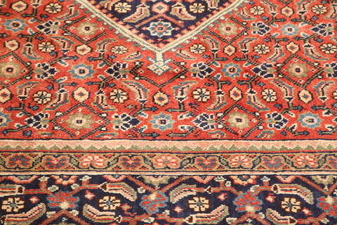 This carpet is woven in Mahalat southwest of the capital Teheran. The carpet is woven with beautiful shining wool and it has regular knotting making it one of the strongest of the Persians. The knot used is Senneh and the weft is cotton.