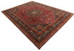 This carpet is knotted in Mashad the capital in the province of Khorasan, an area in norteastern Persia. The patterns are often medallions in dark blue-red and blue nuances and the wool in the carpet is very soft. The Mashad carpets often resemble some Keshan carpets.
