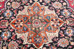 This carpet is knotted in Mashad the capital in the province of Khorasan, an area in norteastern Persia. The patterns are often medallions in dark blue-red and blue nuances and the wool in the carpet is very soft. The Mashad carpets often resemble some Keshan carpets.