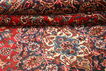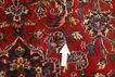 This carpet is knotted in Mashad the capital in the province of Khorasan, an area in norteastern Persia. The patterns are often medallions in dark blue-red and blue nuances and the wool in the carpet is very soft. The Mashad carpets often resemble some Keshan carpets.