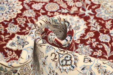 Elaborate weaving technique with specialized artisans tying knots to form rows of pile either by cutting each individual knot or an entire row of knots. Hand-knotting takes time and also allows for intricate patterns.