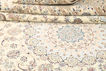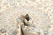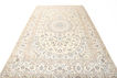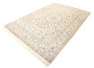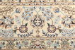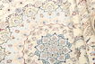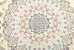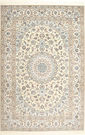 This carpet is knotted in workshops in the city of Nain in central Persia, near Isfahan. The carpet is generally very light with a cream-coloured or deep-blue bottom colour and a large medallion in the centre. The high knot density and high class material makes these carpets of very high quality. Silk might occur and 6La means that three pairs of threads are used for every warp thread. They are manufactured in most sizes and the carpet is among the most beautiful in the world and very popular among collectors. Habibian is one of the most famous carpet knotters in modern times.