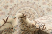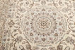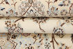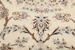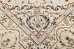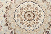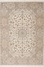 This carpet is knotted in workshops in the city of Nain in central Persia, near Isfahan. The carpet is generally very light with a cream-coloured or deep-blue bottom colour and a large medallion in the centre. The high knot density and high class material makes these carpets of very high quality. Silk might occur and 6La means that three pairs of threads are used for every warp thread. They are manufactured in most sizes and the carpet is among the most beautiful in the world and very popular among collectors. Habibian is one of the most famous carpet knotters in modern times.