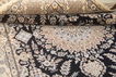 This carpet is knotted in workshops in the city of Nain in central Persia, near Isfahan. The carpet is generally very light with a cream-coloured or deep-blue bottom colour and a large medallion in the centre. The high knot density and high class material makes these carpets of very high quality. Silk might occur and 6La means that three pairs of threads are used for every warp thread. They are manufactured in most sizes and the carpet is among the most beautiful in the world and very popular among collectors. Habibian is one of the most famous carpet knotters in modern times.