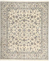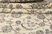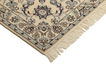 This carpet is knotted in workshops in the city of Nain in central Persia, near Isfahan. The carpet is generally very light with a cream-coloured or deep-blue bottom colour and a large medallion in the centre. The high knot density and high class material makes these carpets of very high quality. Silk might occur and 6La means that three pairs of threads are used for every warp thread. They are manufactured in most sizes and the carpet is among the most beautiful in the world and very popular among collectors. Habibian is one of the most famous carpet knotters in modern times.