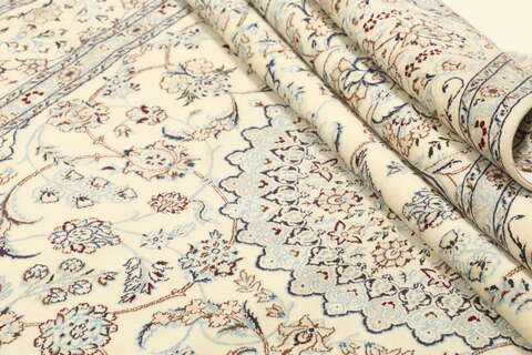 Elaborate weaving technique with specialized artisans tying knots to form rows of pile either by cutting each individual knot or an entire row of knots. Hand-knotting takes time and also allows for intricate patterns.