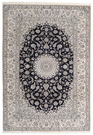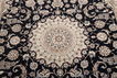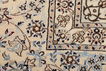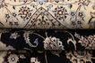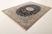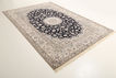 This carpet is knotted in workshops in the city of Nain in central Persia, near Isfahan. The carpet is generally very light with a cream-coloured or deep-blue bottom colour and a large medallion in the centre. The high knot density and high class material makes these carpets of very high quality. Silk might occur and 6La means that three pairs of threads are used for every warp thread. They are manufactured in most sizes and the carpet is among the most beautiful in the world and very popular among collectors.