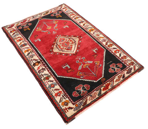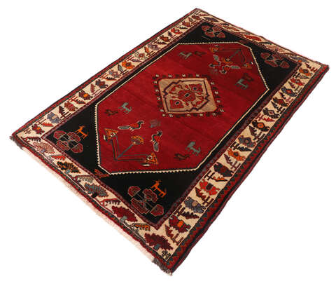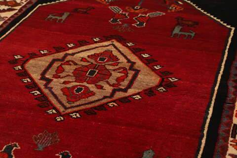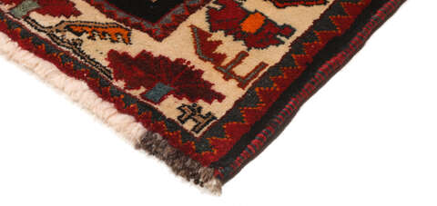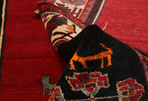 This carpet is knotted by nomads from the highlands in southwestern Persia. The carpet has a very high knot density for a nomad carpet and the motifs are among the most exciting and varying in carpets made by nomads. The carpet is usually deep-red and blue and are worth its price due to their high quality.