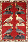 This carpet is knotted by nomads from the highlands in southwestern Persia. The carpet has a very high knot density for a nomad carpet and the motifs are among the most exciting and varying in carpets made by nomads. The carpet is usually deep-red and blue and are worth its price due to their high quality.