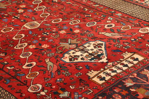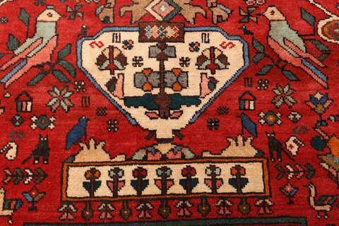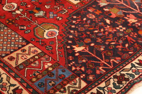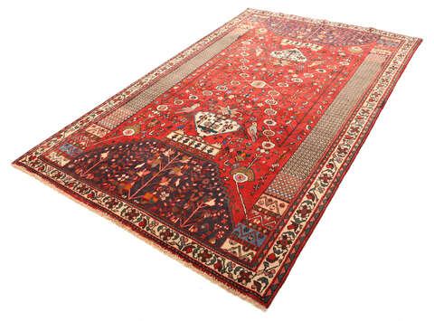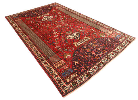 This carpet is knotted by nomads from the highlands in southwestern Persia. The carpet has a very high knot density for a nomad carpet and the motifs are among the most exciting and varying in carpets made by nomads. The carpet is usually deep-red and blue and are worth its price due to their high quality.