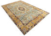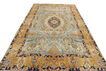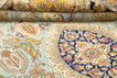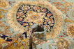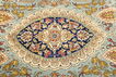 This carpet is knotted in the holy town of Qum in central Persia. The wool used is known as cork-wool and it is sheared from the neck of the lamb. This makes it possible to spin the wool extra thin, thus leading to durable threads which makes the carpet very tight. The carpet is extremly well-made and in some cases very detailed. This kind of carpet shows a fine tradition of knotting silk carpets.