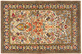 This carpet is knotted in the holy town of Qum in central Persia. The wool used is known as cork-wool and it is sheared from the neck of the lamb. This makes it possible to spin the wool extra thin, thus leading to durable threads which makes the carpet very tight. The carpet is extremly well-made and in some cases very detailed. This kind of carpet shows a fine tradition of knotting silk carpets.