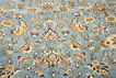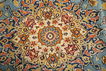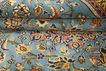 This carpet is knotted in the holy town of Qum in central Persia. The wool used is known as cork-wool and it is sheared from the neck of the lamb. This makes it possible to spin the wool extra thin, thus leading to durable threads which makes the carpet very tight. The carpet is extremly well-made and in some cases very detailed. This kind of carpet shows a fine tradition of knotting silk carpets.