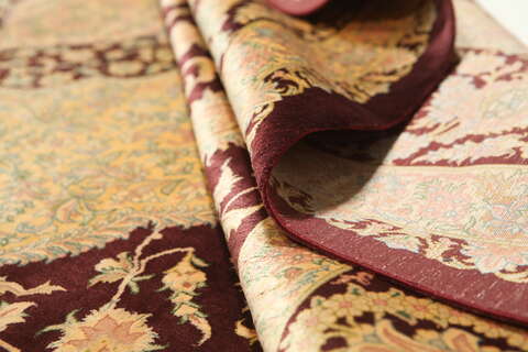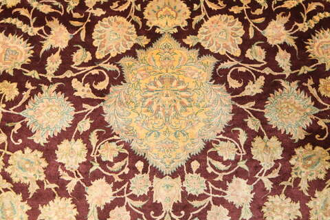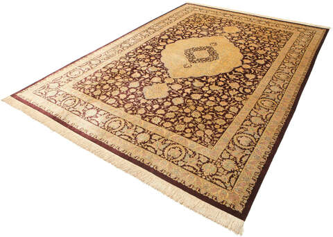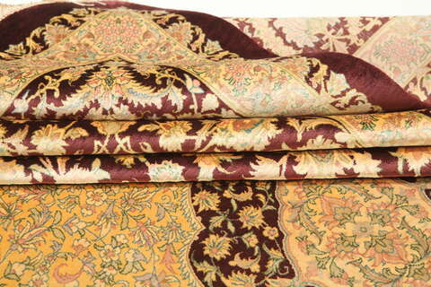 These carpets are knotted in the holy town of Qum in central Persia. The material used is silk which makes them thin and tight. The carpets are extremly well-made and in some cases very detailed. This kind of carpet shows a fine tradition of knotting silk carpets and is one of the best and newly manufactured carpets.