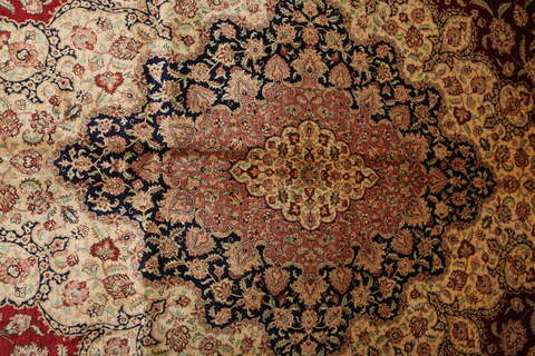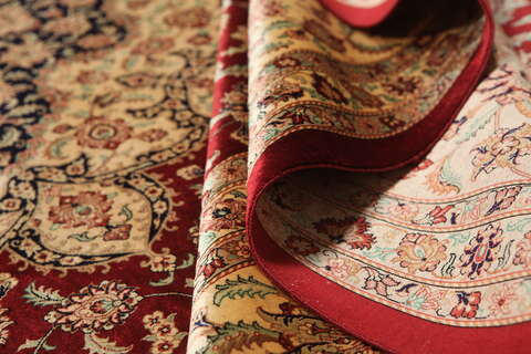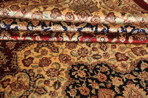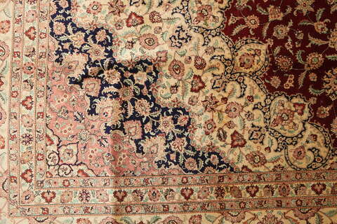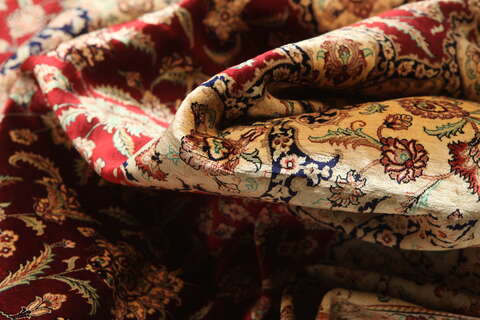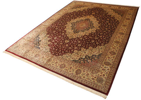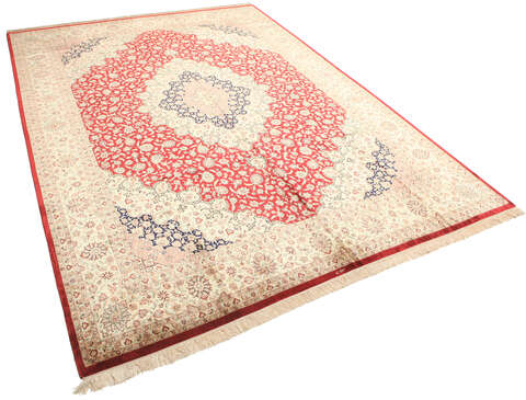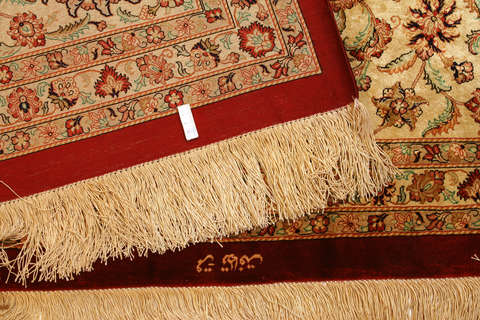 These carpets are knotted in the holy town of Qum in central Persia. The material used is silk which makes them thin and tight. The carpets are extremly well-made and in some cases very detailed. This kind of carpet shows a fine tradition of knotting silk carpets and is one of the best and newly manufactured carpets.