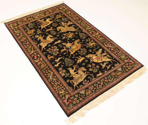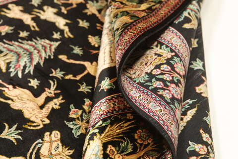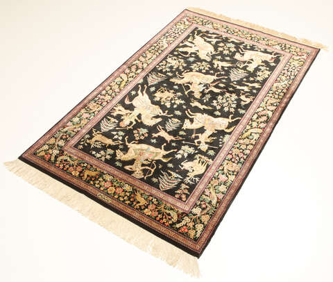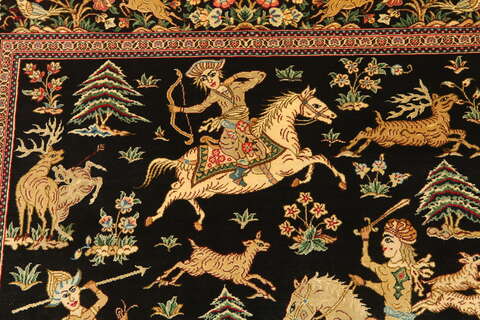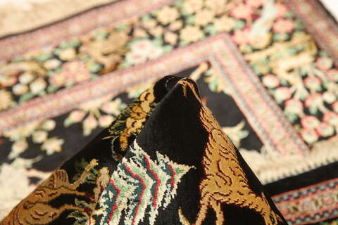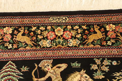Qum silk pictorial signed: Qum Motevasel carpet VEXX24