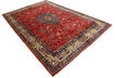 This carpet is knotted in a large area surrounding the village of Sarough in the western parts of central Persia. The carpet, often red or blue, is manufactured with a number of different patterns, but often have a centrally placed medallion and a distinct defined border. The wool used is of high quality and treated to luster and the carpet is thick and durable.