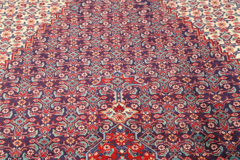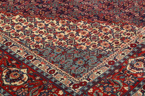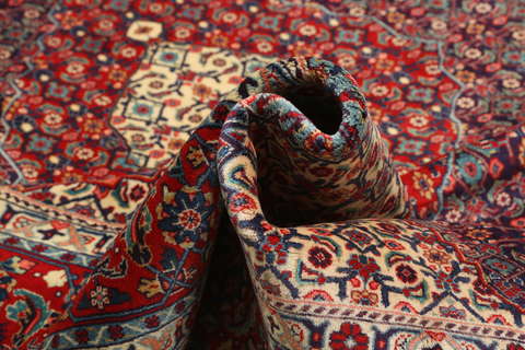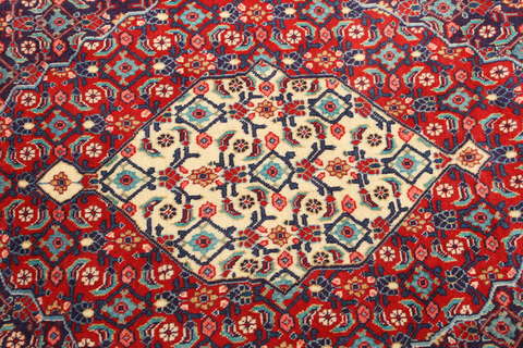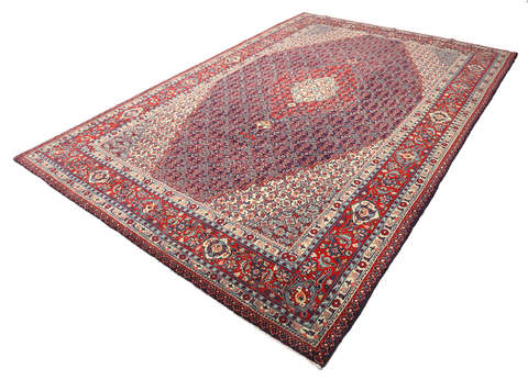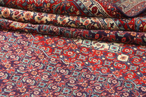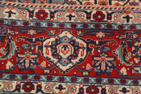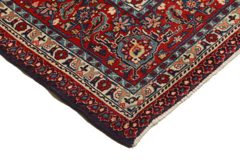 This carpet is knotted in a large area surrounding the village of Sarough in the western parts of central Persia. The carpet, often red or blue, is manufactured with a number of different patterns, but often have a centrally placed medallion and a distinct defined border. The wool used is of high quality and treated to luster and the carpet is thick and durable.