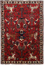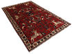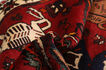 This carpet is knotted in the province of Fars in southwest of Iran, with the city of Shiraz as the capital province. The carpet was originally knotted by nomads that lived in the area, but nowadays most of them are resident in smaller villages in the province. The pattern in the carpet is typical for nomads with motifs of simple geometric figures and often with one or more rhombs in the center. The bottom colour is often red and the motifs in different blue nuances. There are also stilized flowers and bird motifs. The carpets are considered to be rustic and of good quality.