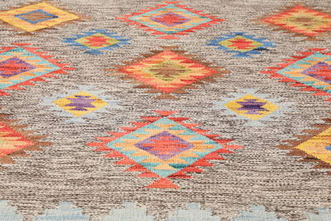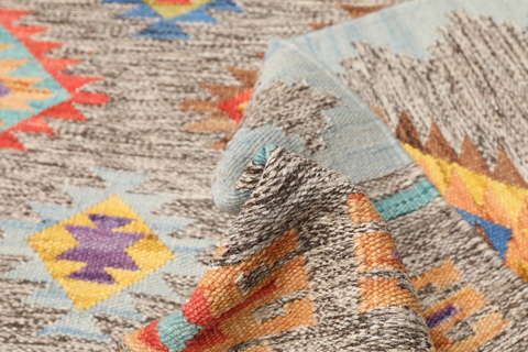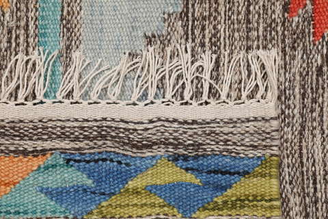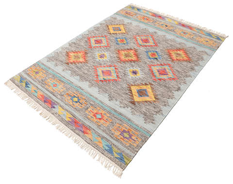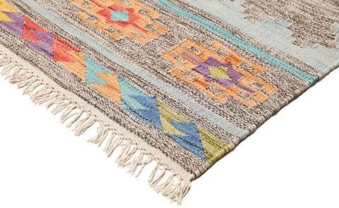 This carpet is woven mainly in Dhurrie in India, but also in other places in the country. It is an Indian kelim weaving made of wool.