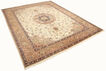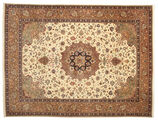 This carpet is knotted in workshops in the city of Tabriz in northwestern Persia. It is a sturdy durable carpet with a short rough pile. The patterns can consist of a centrally placed medallion surrounded by arabesques, weeping willows and cypresses. Another popular motif is the four seasons, describing the Persian farmers life during spring, summer, autumn and winter.