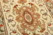 This carpet is knotted in workshops in the city of Tabriz in northwestern Persia. It is a sturdy durable carpet with a short rough pile. The patterns can consist of a centrally placed medallion surrounded by arabesques, weeping willows and cypresses. Another popular motif is the four seasons, describing the Persian farmers life during spring, summer, autumn and winter.