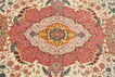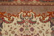This carpet is knotted in workshops in the city of Tabriz in northwestern Persia. It is a sturdy durable carpet with a short rough pile. The patterns can consist of a centrally placed medallion surrounded by arabesques, weeping willows and cypresses. Another popular motif is the four seasons, describing the Persian farmers life during spring, summer, autumn and winter.