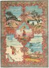This carpet is knotted in workshops in the city of Tabriz in northwestern Persia. It is a sturdy durable carpet with a short rough pile. The patterns can consist of a centrally placed medallion surrounded by arabesques, weeping willows and cypresses. Another popular motif is the four seasons, describing the Persian farmers life during spring, summer, autumn and winter.