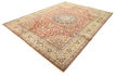 This carpet is knotted in workshops in the city of Tabriz in northwestern Persia. It is a sturdy durable carpet with a short rough pile. The patterns can consist of a centrally placed medallion surrounded by arabesques, weeping willows and cypresses. Another popular motif is the four seasons, describing the Persian farmers life during spring, summer, autumn and winter.