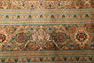 This carpet is knotted in workshops in the city of Tabriz in northwestern Persia. It is a sturdy durable carpet with a short rough pile. The patterns can consist of a centrally placed medallion surrounded by arabesques, weeping willows and cypresses. Another popular motif is the four seasons, describing the Persian farmers life during spring, summer, autumn and winter.