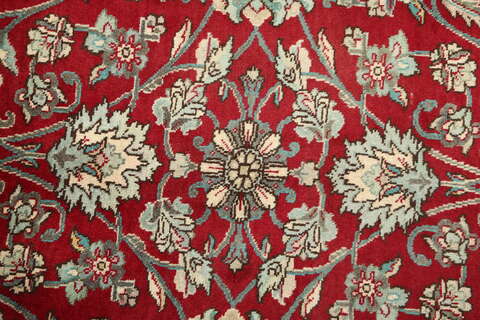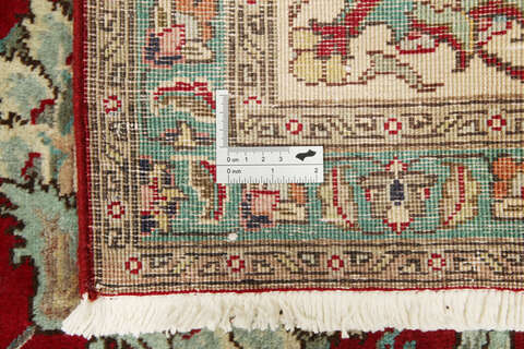 This carpet is knotted in workshops in the city of Tabriz in northwestern Persia. It is a sturdy durable carpet with a short rough pile. The patterns can consist of a centrally placed medallion surrounded by arabesques, weeping willows and cypresses. Another popular motif is the four seasons, describing the Persian farmers life during spring, summer, autumn and winter.