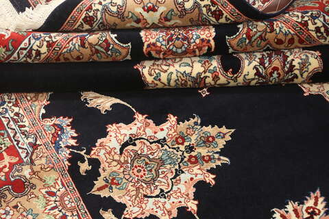 Elaborate weaving technique with specialized artisans tying knots to form rows of pile either by cutting each individual knot or an entire row of knots. Hand-knotting takes time and also allows for intricate patterns.
