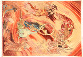 This carpet is knotted in workshops in the city of Tabriz in northwestern Persia. It is a sturdy durable carpet with a short rough pile. The patterns can consist of a centrally placed medallion surrounded by arabesques, weeping willows and cypresses. Another popular motif is the four seasons, describing the Persian farmers life during spring, summer, autumn and winter.