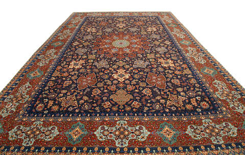 This carpet is knotted in workshops in the city of Tabriz in northwestern Persia. It is a sturdy durable carpet with a short rough pile. The patterns can consist of a centrally placed medallion surrounded by arabesques, weeping willows and cypresses. Another popular motif is the four seasons, describing the Persian farmers life during spring, summer, autumn and winter.