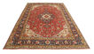 This carpet is knotted in workshops in the city of Tabriz in northwestern Persia. It is a sturdy durable carpet with a short rough pile. The patterns can consist of a centrally placed medallion surrounded by arabesques, weeping willows and cypresses. Another popular motif is the four seasons, describing the Persian farmers life during spring, summer, autumn and winter.
