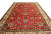 This carpet is knotted in workshops in the city of Tabriz in northwestern Persia. It is a sturdy durable carpet with a short rough pile. The patterns can consist of a centrally placed medallion surrounded by arabesques, weeping willows and cypresses. Another popular motif is the four seasons, describing the Persian farmers life during spring, summer, autumn and winter.